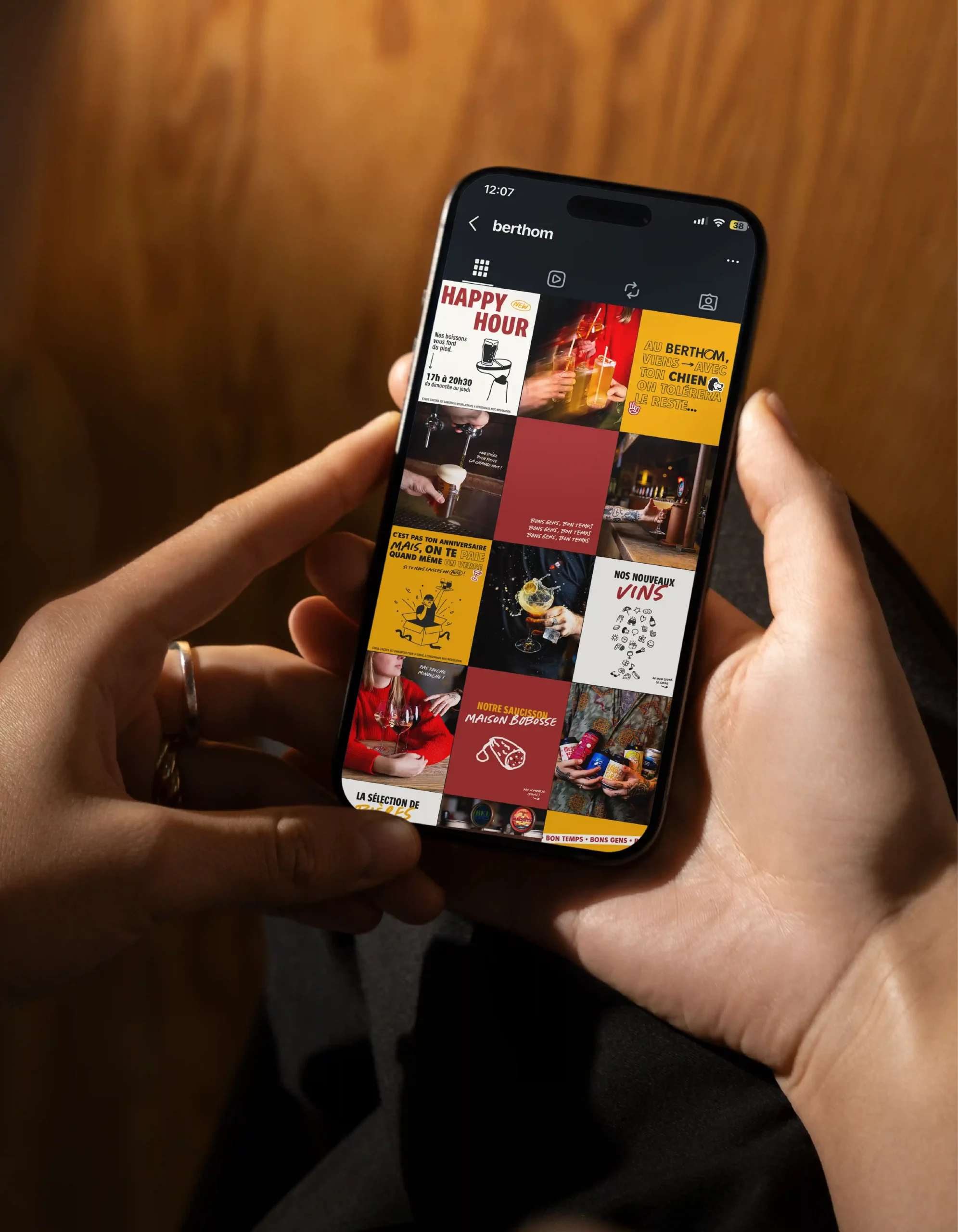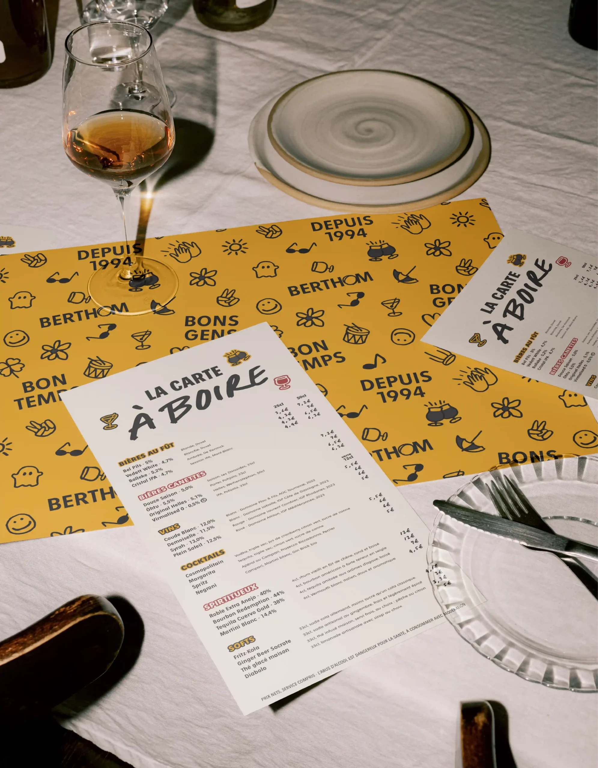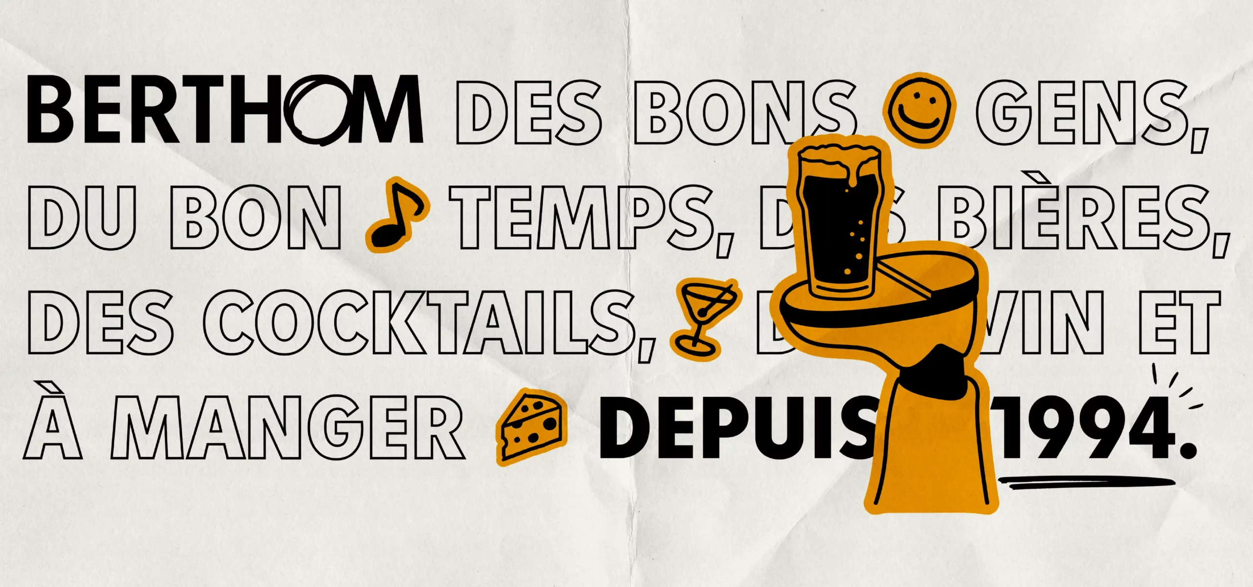 Berthom est un bar né dans les années 90 autour de la bière belge. Le projet consiste à faire évoluer son image tout en conservant l’esprit du lieu : un endroit simple, convivial, où l’on vient boire un verre, manger et passer du bon temps.
